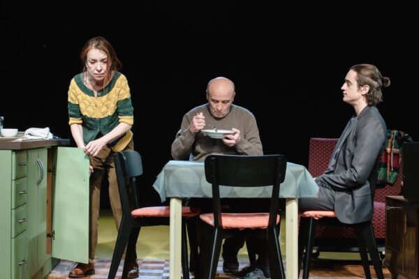 28. natjecanje – dobitnici karata za predstavu Sin, majka i otac sjede za stolom i dugo šute