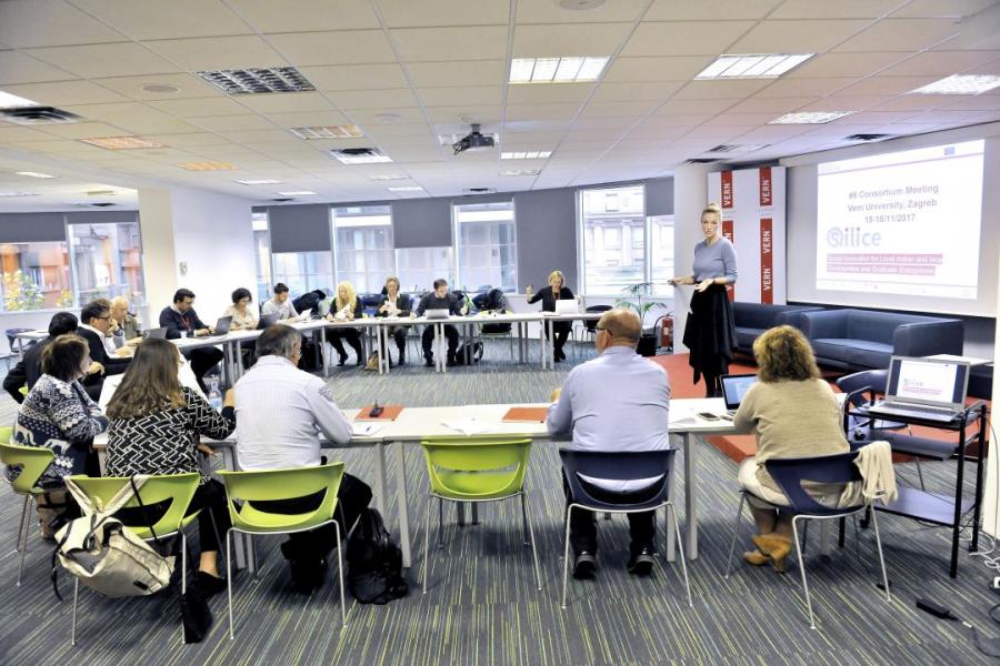 Na Veleučilištu VERN’ je u srijedu 15. studenoga održana panel diskusija na temu iskustva poduzetnika u pokretanju socijalno-poduzetničkih projekata, na kojoj su predstavnice hrvatskih inkubatora za društveno poduzetništvo i inovacije razmijenile svoja vrijedna iskustva s budućim menadžerima inkubatora socijalnog poduzetništva iz Izraela i Indije.