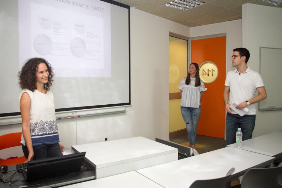 Na kraju semestra studentski timovi prezentiraju zajednička rješenja poslovnih slučajeva pred stručnim žirijem, kojega su na ovom projektu činili Sanja Milinović iz HT-a (poslovna mentorica) i dr. sc. Mirela Holy, predavačica na predmetu (akademska mentorica), koje su evaluirale predstavljena rješenja.