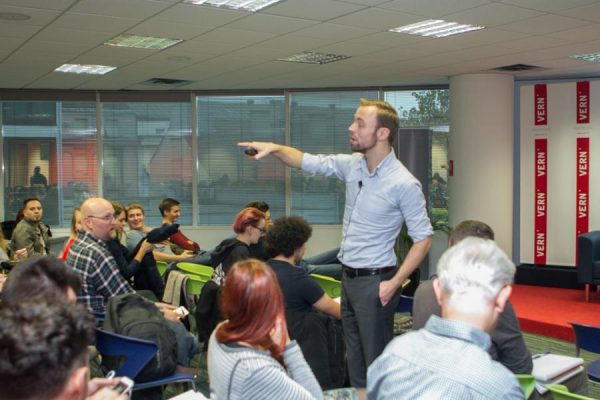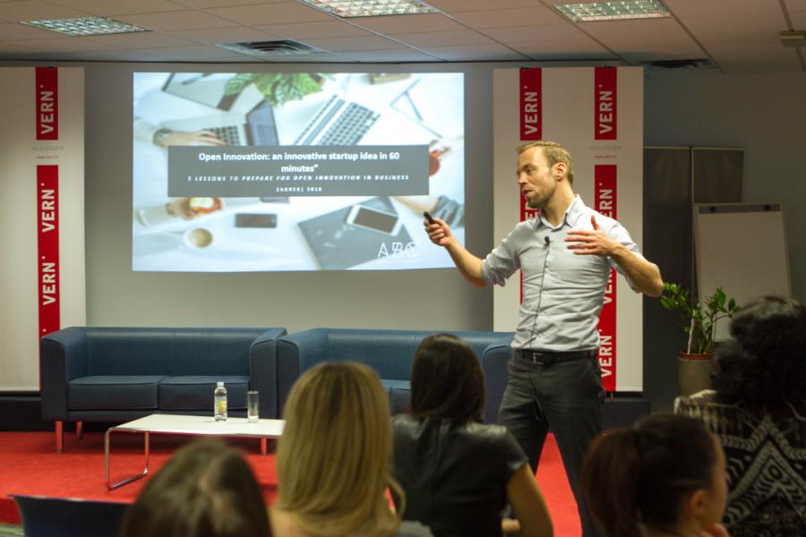 „Imajte lude ideje i razvijajte ih, to je jedini način kako možete biti inovativni. Oslobodite se tereta stereotipa o inovacijama. Inovacije nisu samo aktivnosti istraživanja i razvoja, one nisu izmišljanje ludih ideja, ne događaju se samo u polju tehnologije, ne moraju biti skupe i nisu namijenjene isključivo velikim kompanijama“, poručio je VERN’ovim studentima Tom Spanjaard, predavač inovacijskog menadžmenta i marketinga s nizozemskog Sveučilišta Avans te stručnjak za razvoj inovativnih sposobnosti u studentskim i tehničkim timovima te malim, srednjim i velikim poslovnim organizacijama.