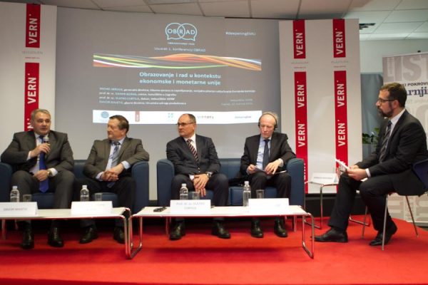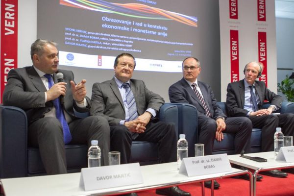 Jačanje suradnje i komunikacije između sustava obrazovanja i gospodarstva bila je i tema panela na kojem su uz Michela Servoza sudjelovali i prof. dr. sc. Damir Boras, rektor zagrebačkog Sveučilišta, prof. dr. sc. Vlatko Cvrtila, dekan VERN’a i Davor Majetić glavni direktor Hrvatske udruge poslodavaca.