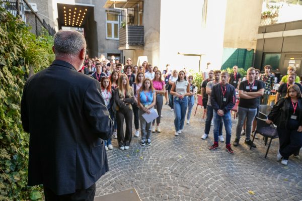 Nakon službenog dijela programa druženje novih studenata i njihovih starijih kolega i profesora nastavljeno je na dvorišnoj terasi VERN’ove kantine.