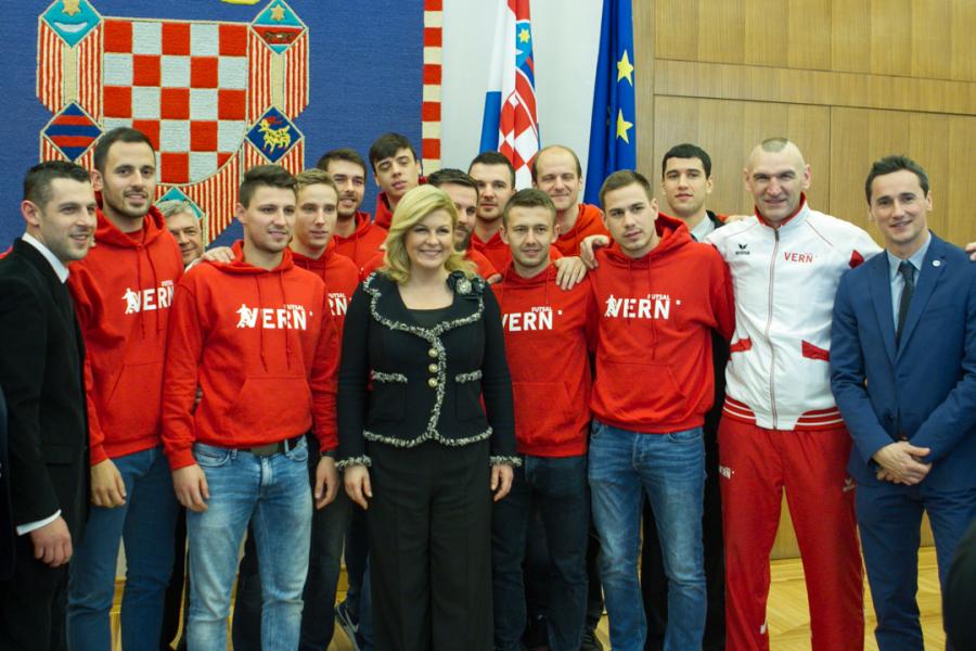 Predsjednica Republike Hrvatske Kolinda Grabar Kitarović u svom je Uredu primila VERN'ovu malonogometnu momčad, osvajače naslova prvaka Europskog sveučilišnog prvenstva u futsalu, koje je u kolovozu održano u Poljskoj
